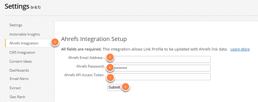 5. Enter in your AHREFS Email Address into the first text box