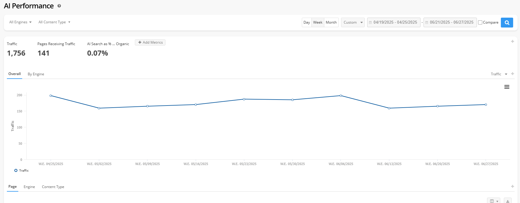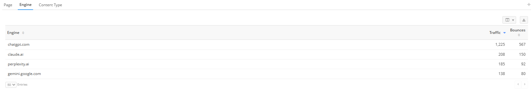 Engine: Displays the specific AI engine generating the corresponding site analytics data.