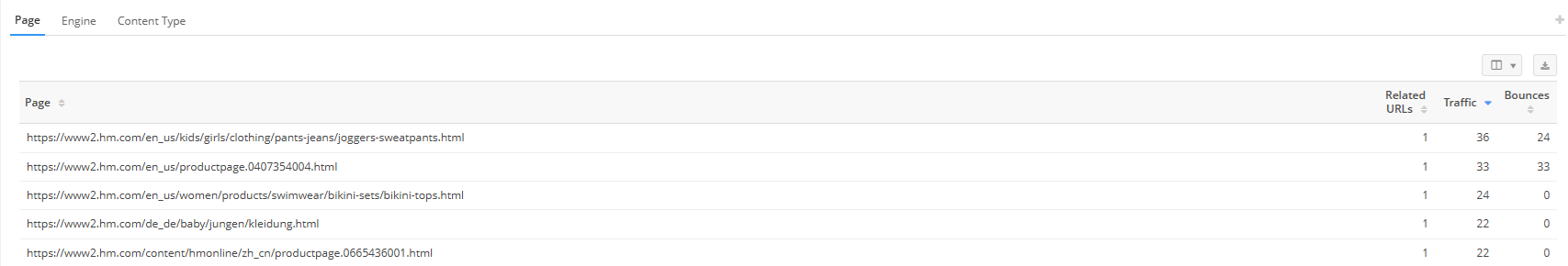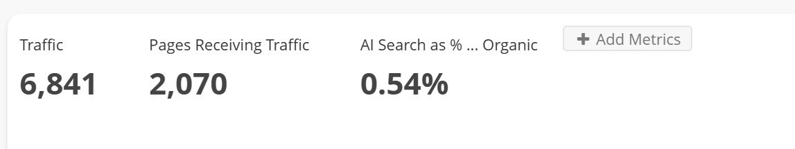 Traffic: Displays the data of the primary traffic metric (i.e. visits, sessions, entrances, etc) from the integrated Analytics profile.