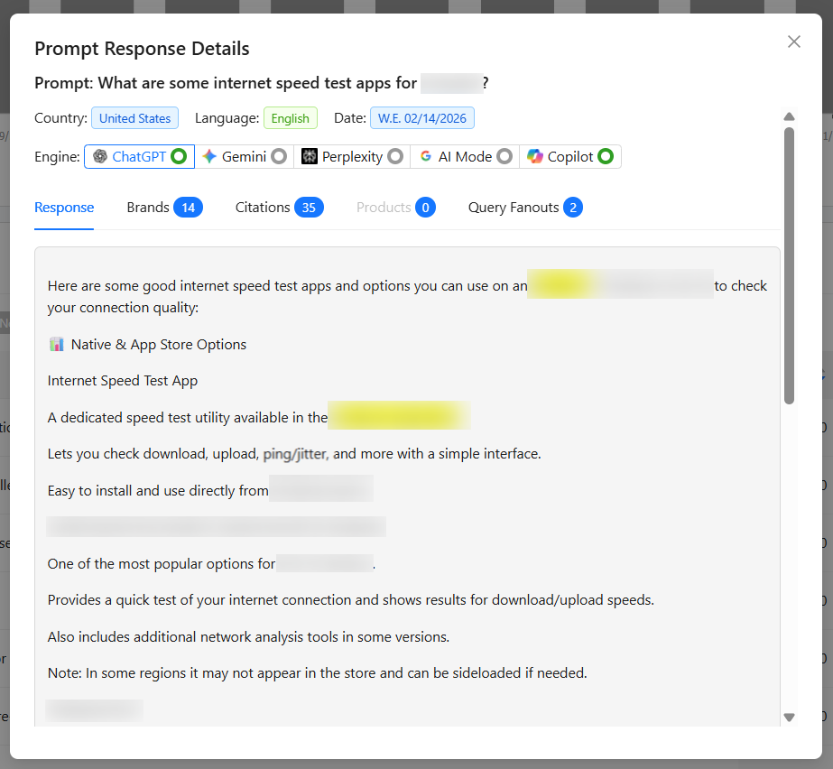 This section displays raw data and qualitative analysis by showing not just what people are asking, but how different AI engines are answering.