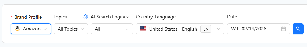 Brand Profile: Select the specific brand entity (yours or a competitor) to analyze, based on your pre-configured settings.