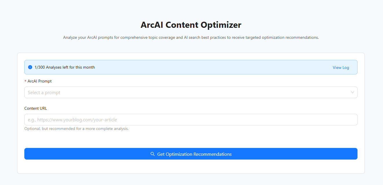 The Arc AI Content Optimizer is designed to boost your content's visibility in AI search results through advanced analysis and optimization. Its main goal is to make your content appealing to AI engines while ensuring it remains valuable to your audience. By analyzing your content and offering actionable recommendations, the optimizer helps you enhance its usefulness and clarity, increasing your visibility and relevance in AI searches.