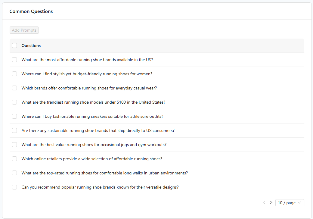 Selecting "Research User Questions" in AI Search Visibility does not automatically deduplicate existing questions within a Topic. The "Research User Questions" AI agent focuses on identifying the most frequent and important questions related to your ...