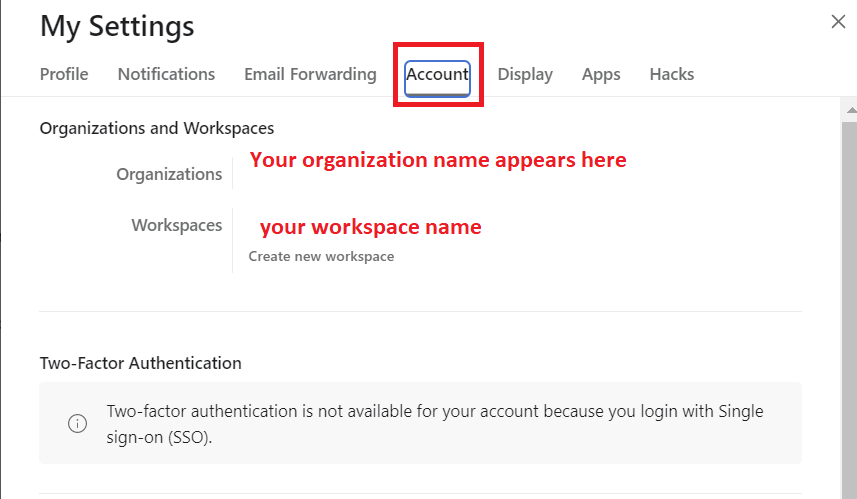 6) Go to the "Account" tab and review your Organization and Workspace names to integrate with SeoClarity. You will need these later.