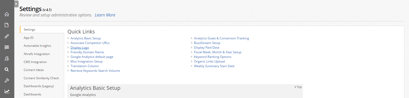 Customization Settings Settings are administrative-only options for customizations and integrations within the account. Below are descriptions of those found on the main settings tab. Associate Competitor URLs Can activate an automatic association of ...