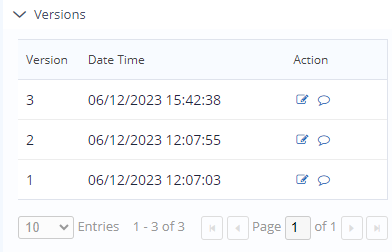 This toggle-able view displays historical versions of saved content with action options to load previous versions, as well as add notes to each version.