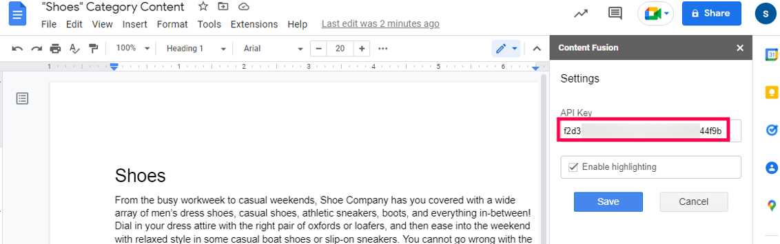 Watch this quick video to learn how to use the Content Fusion Google Docs Plugin, or follow the step-by-step instructions below.