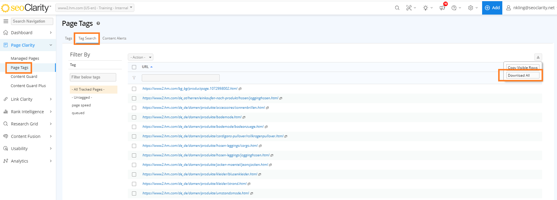 1. Navigate to Page Tags - Tag Search tab in Page Clarity