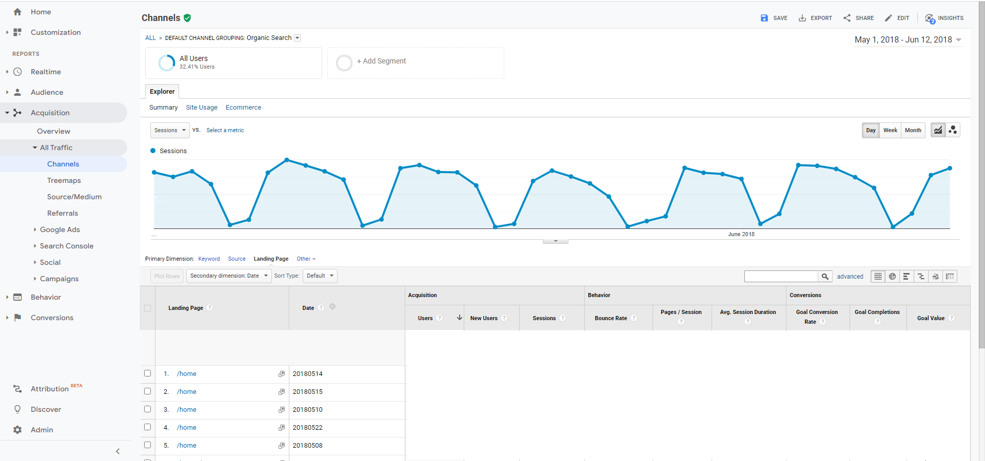 - Traffic - The naming convention for this might be seen as entrances, sessions, visits or something similar. This should be the organic metric used for reporting internally. For uniformity, this is seen as Traffic throughout the platform.