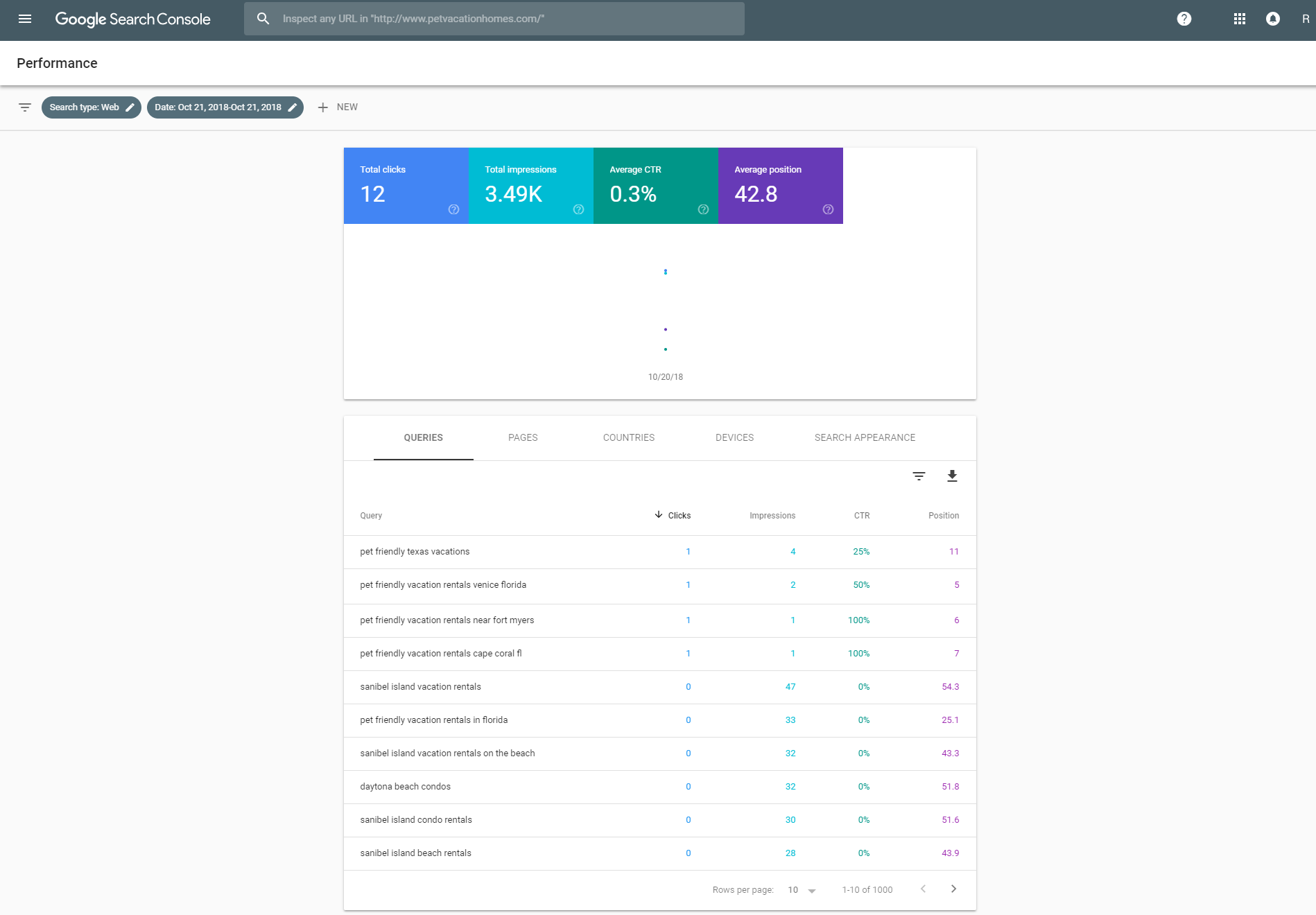 - It's important to filter for each dimension when comparing this view in the Google Search Console interface.