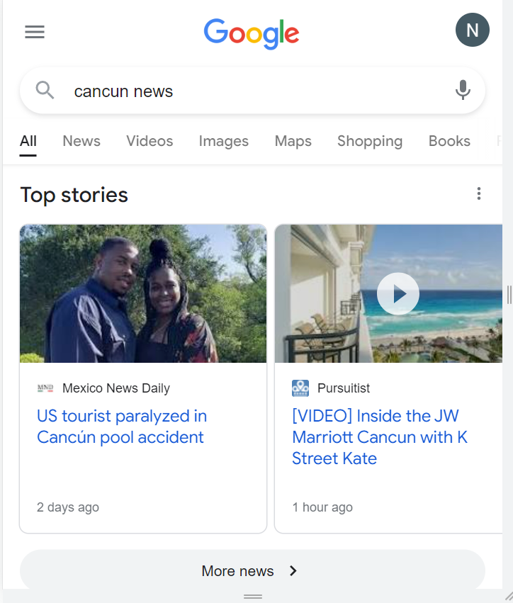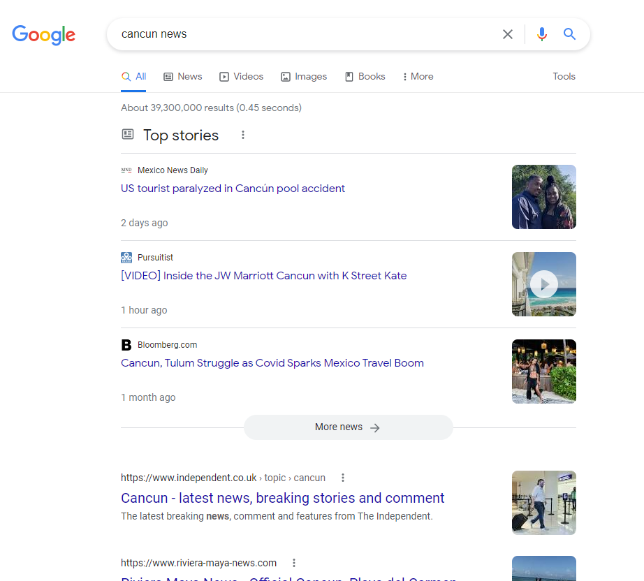 News, Top Stories, & 'Latest From' results |