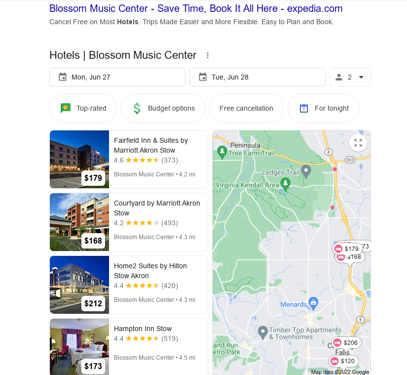 Hotel pack results |