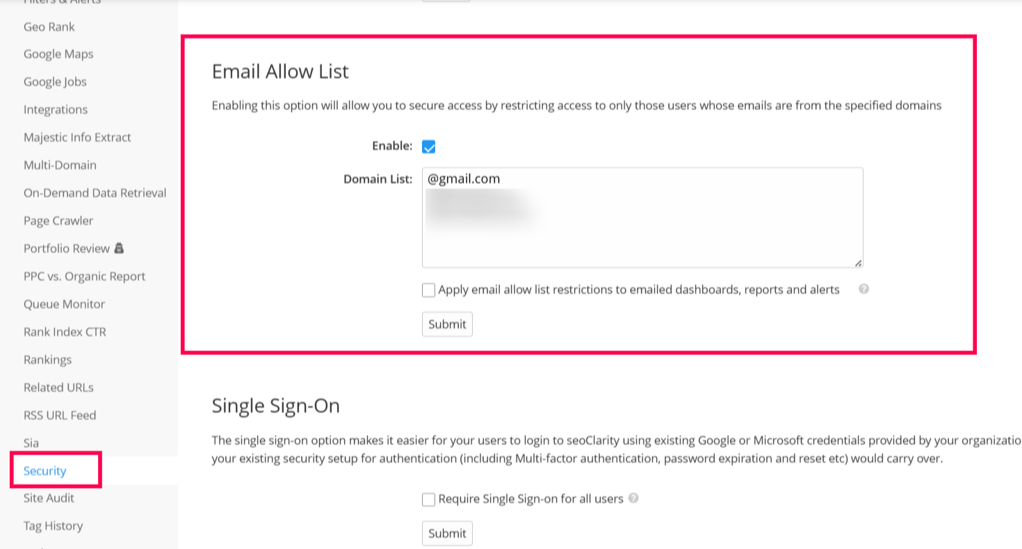Enabling this option will allow you to secure access by restricting access to only those users whose emails are from the specified domains