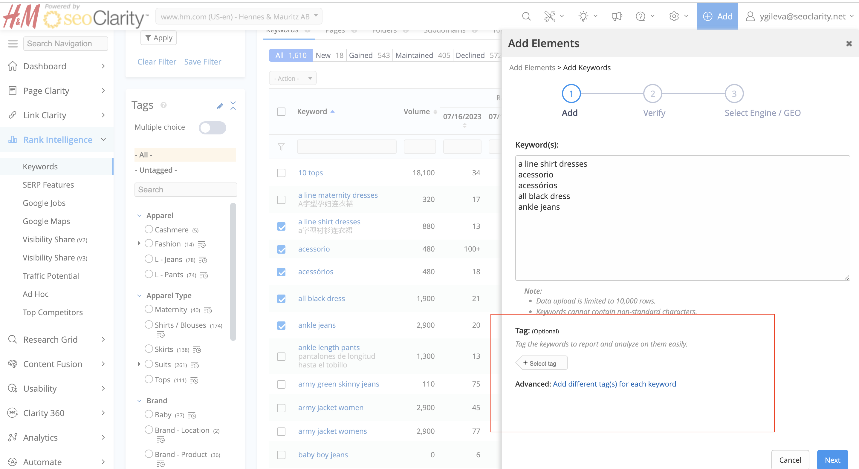 Rank Intelligence - Add Elements, Select Tag