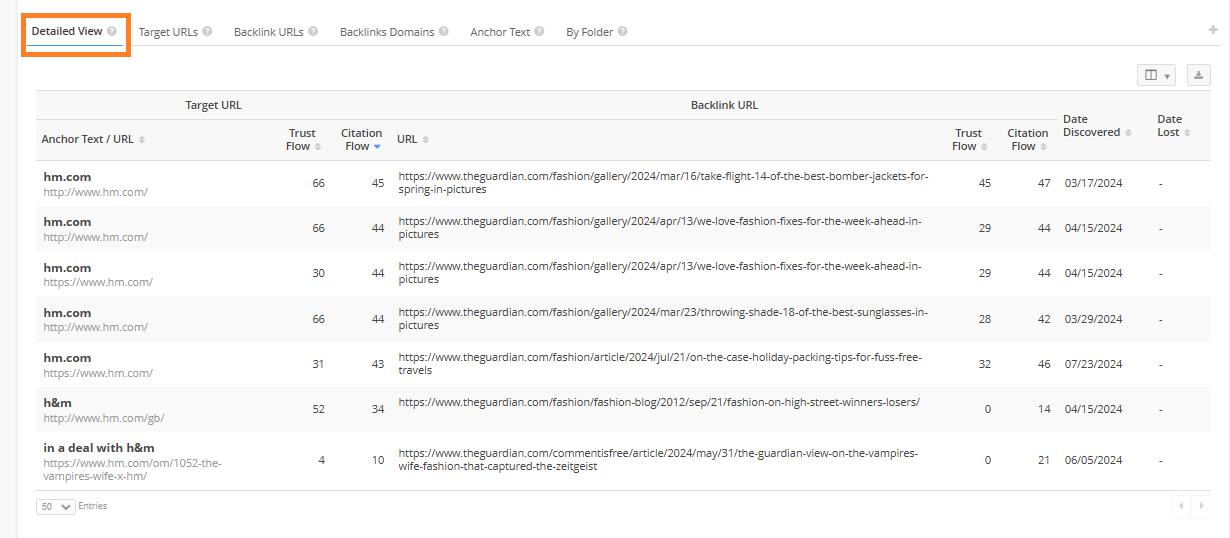 - Find the pages on your site they are linking to using the Detailed View tab in the table.