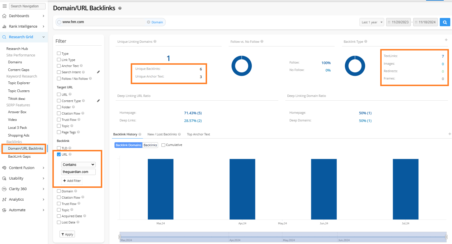 To determine how valuable a backlink is to your site, go to Research Grid > Domain/URL Backlinks.