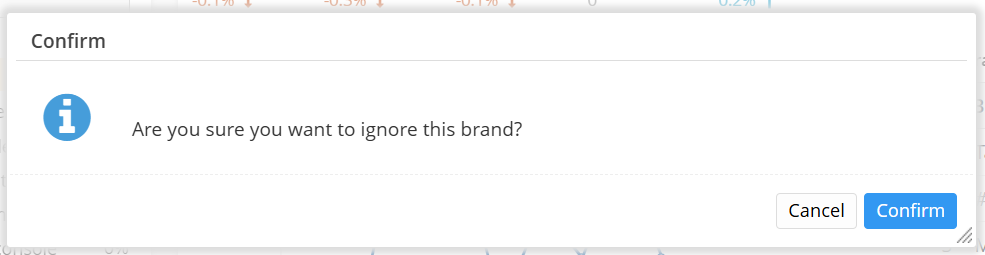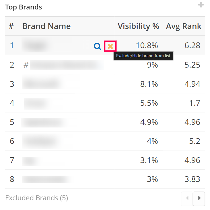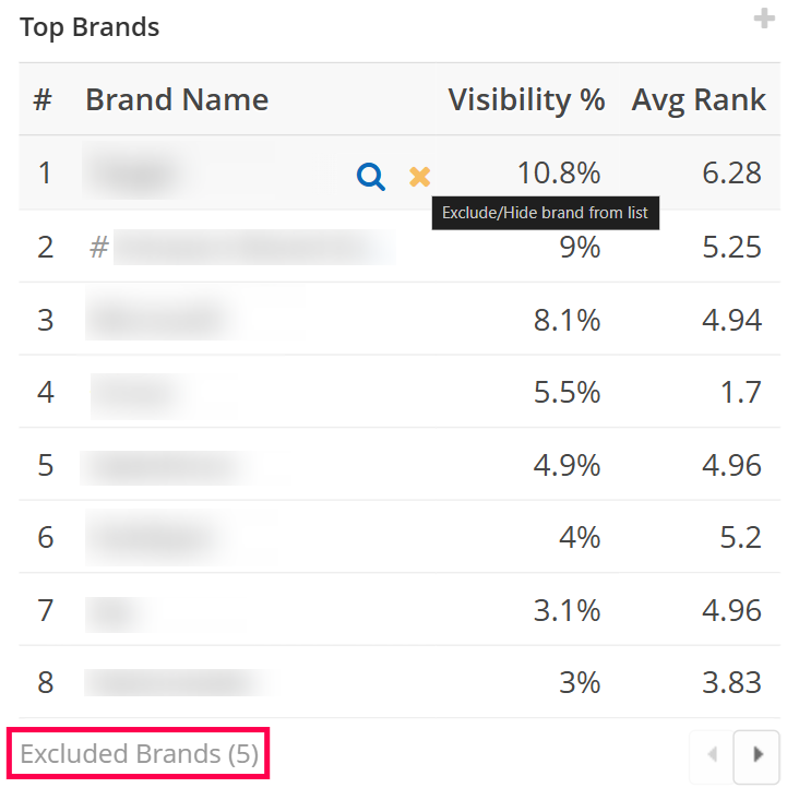 To re-add a brand you excluded back into the Top Brands list, hover your cursor over the brand name. An "x" icon will appear which you can select to re-add it back to the Top Brands list.