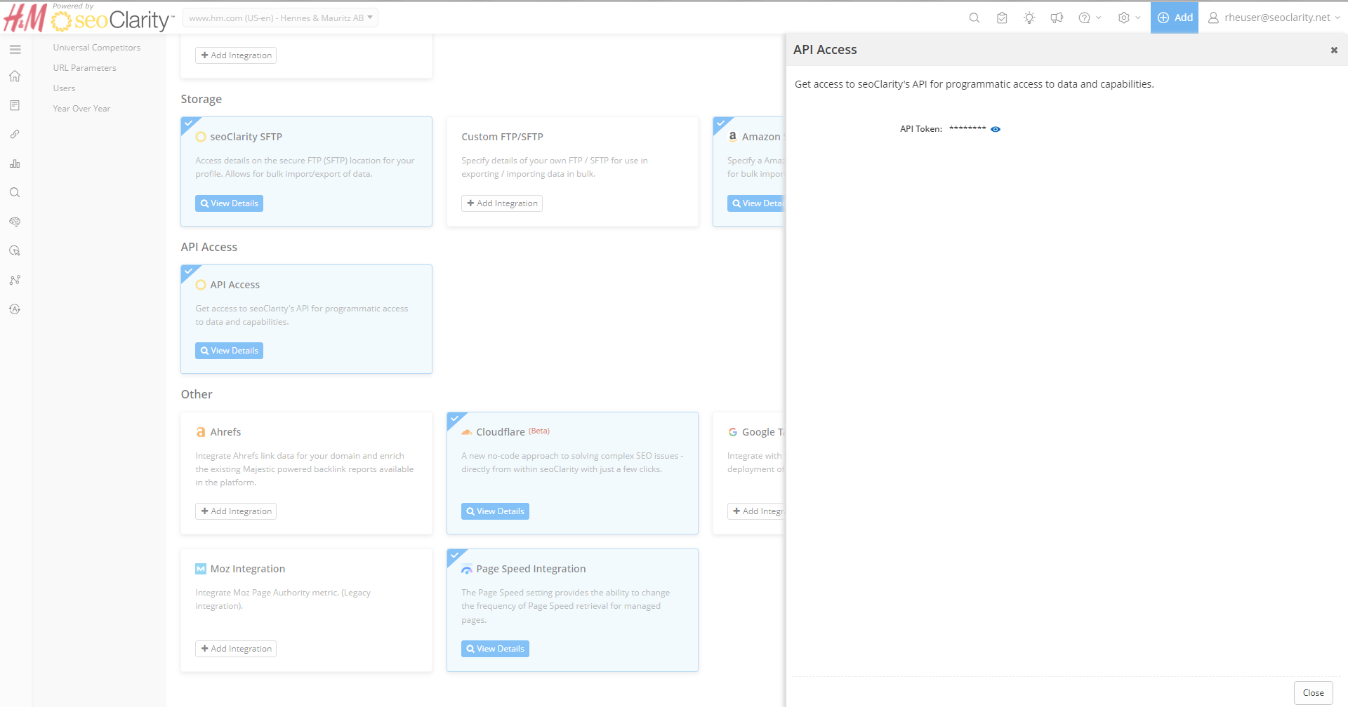 Standard API Overview seoClarity's API provides you programmatic access to a wealth of data, statistics and information collected by the seoClarity platform. The API is designed to be extremely simple to use and flexible to accommodate a wide range ...