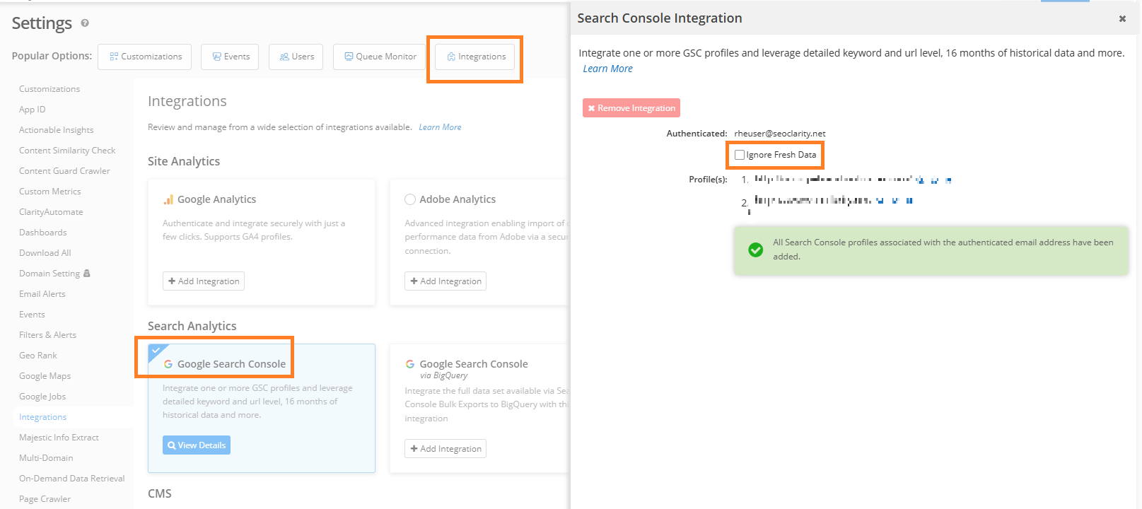 Google Search Console Integration Overview The objective of this integration is to authenticate a Google Search Console account within seoClarity. This integration takes the place of the previous Google Webmaster Tools integration. Background & ...