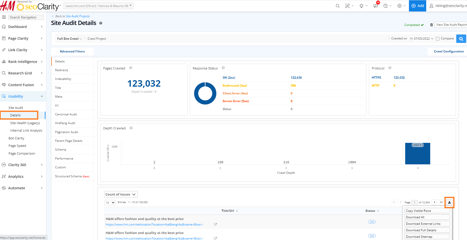 Site Audit: Table Download Options