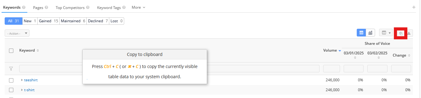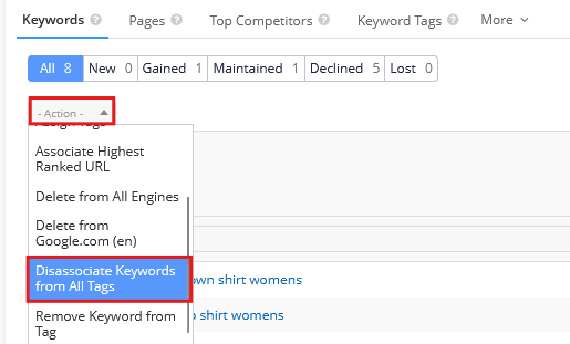 3.) Copy the downloaded keywords from Tag A. Upload them back into the platform and assign them to Tag B.
