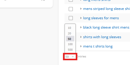 b) If the keyword list has fewer than 500 keywords, expand the list to show up to 500 rows before downloading.