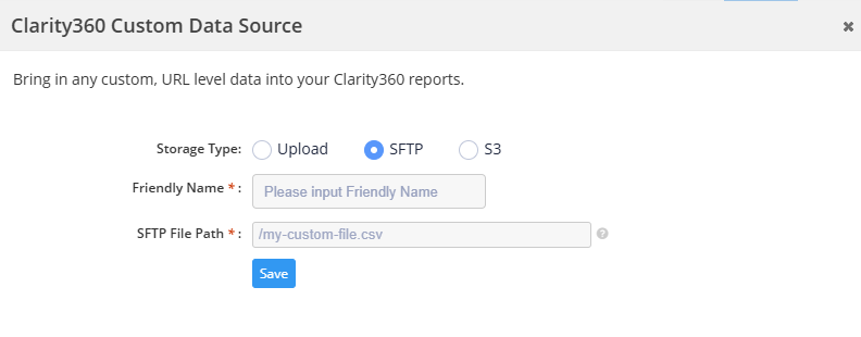 seoClarity SFTP: Every domain in seoClarity has a corresponding FTP/SFTP location that you can connect to. This section also contains the login information for the domain specific SFTP location created by seoClarity.