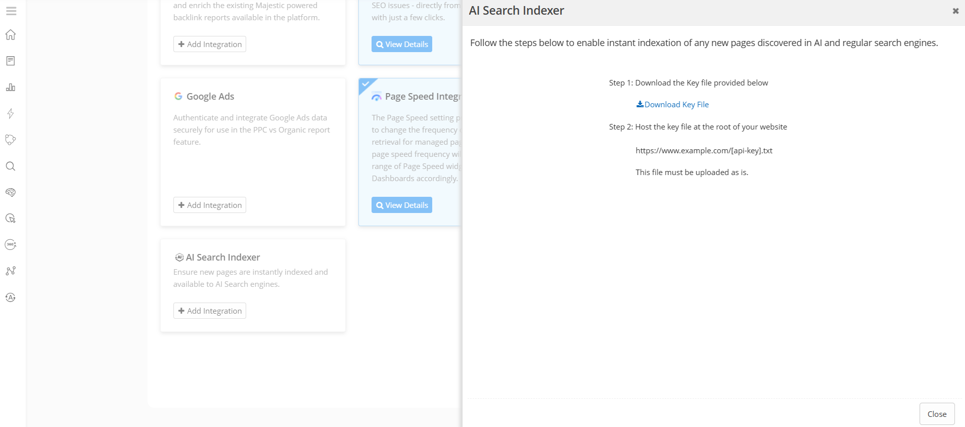 Step 1: Download the Key file provided via the AI Search Indexer settings.