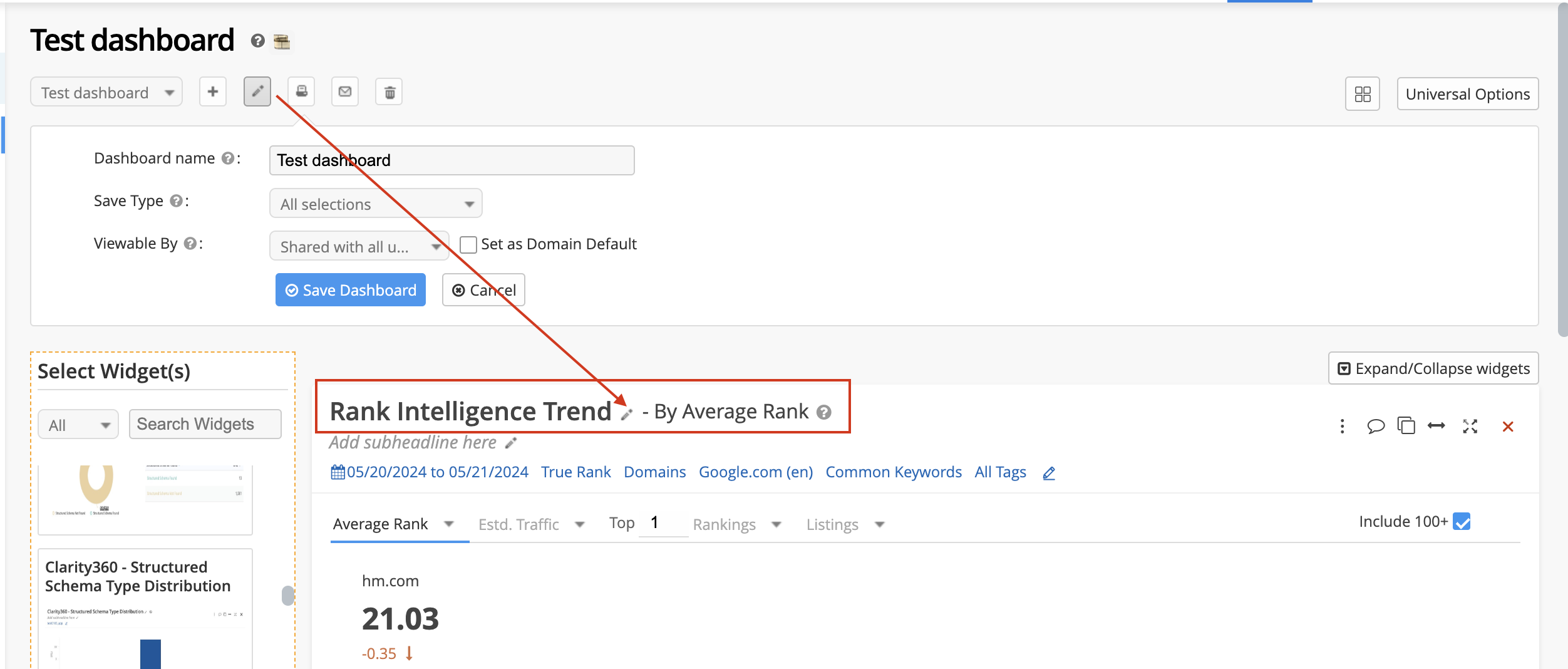 Dashboard Settings Overview Custom Dashboards can be created, edited, deleted, and assigned in this settings section. Insight to all SEO data is available through Dashboards, which can be used to tell a story in the form of a report. Default ...