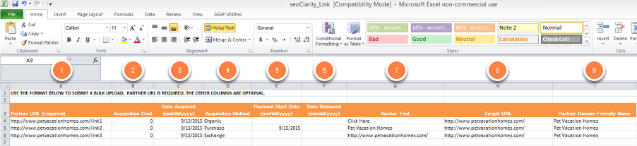 Backlinks must be added to your account for Link Clarity to function. There is no automatic backlink tracking in this feature. Add links via either the "Add Links/URLs" button at the top of the Link Clarity Managed Links Page or from anywhere in the platform using the Universal Add Elements option to see data populate in the table. Backlinks can be uploaded in bulk from a spreadsheet. See the "Link File Upload Spreadsheet" section below for the format.