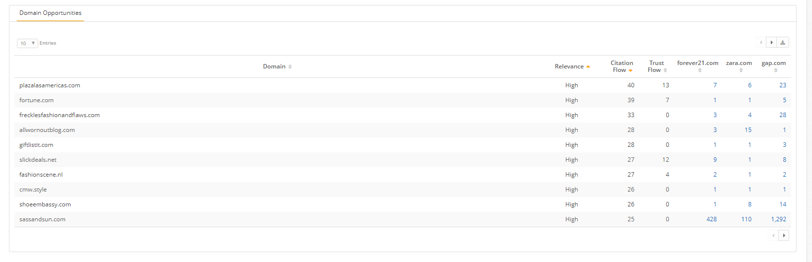 Domain: Displays the list of domains linking to at least one of the competitor domains.