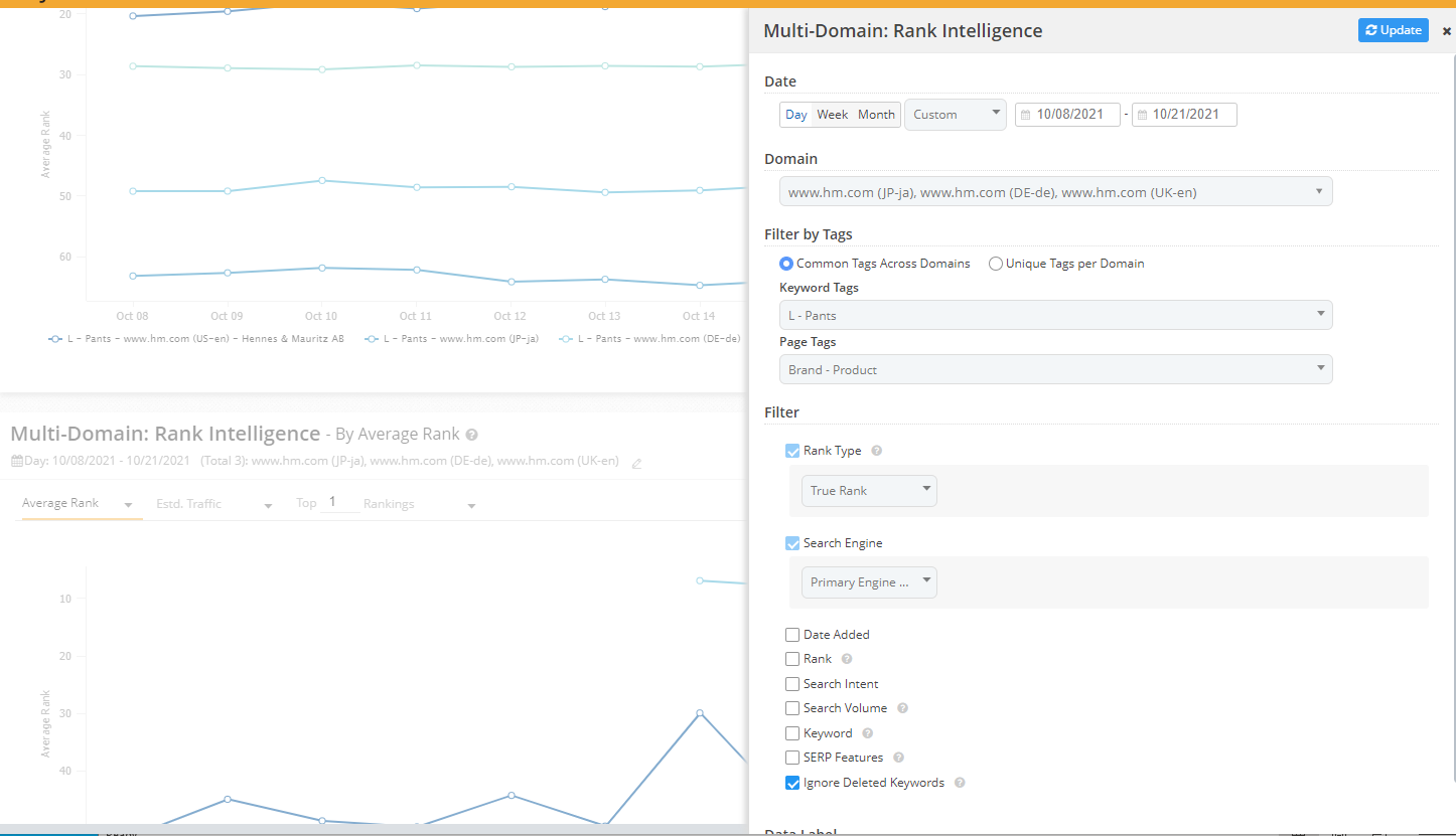 - Multi-Domain: Rank Intelligence: Data table replica of Rank Intelligence that can be viewed for all keywords or a specific keyword tag.