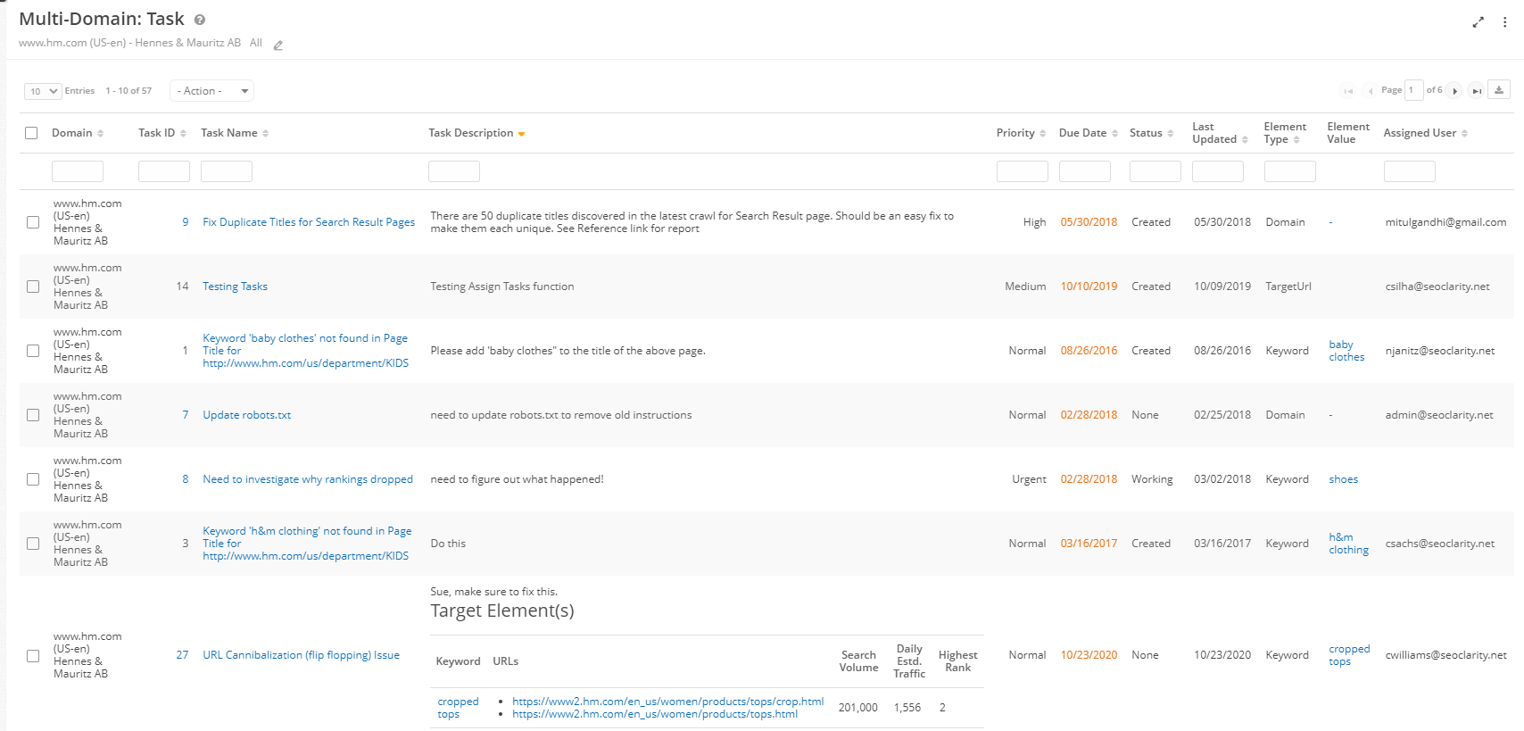 - Multi-Domain: Task: Table that displays all tasks created, their assignees and all relevant information.