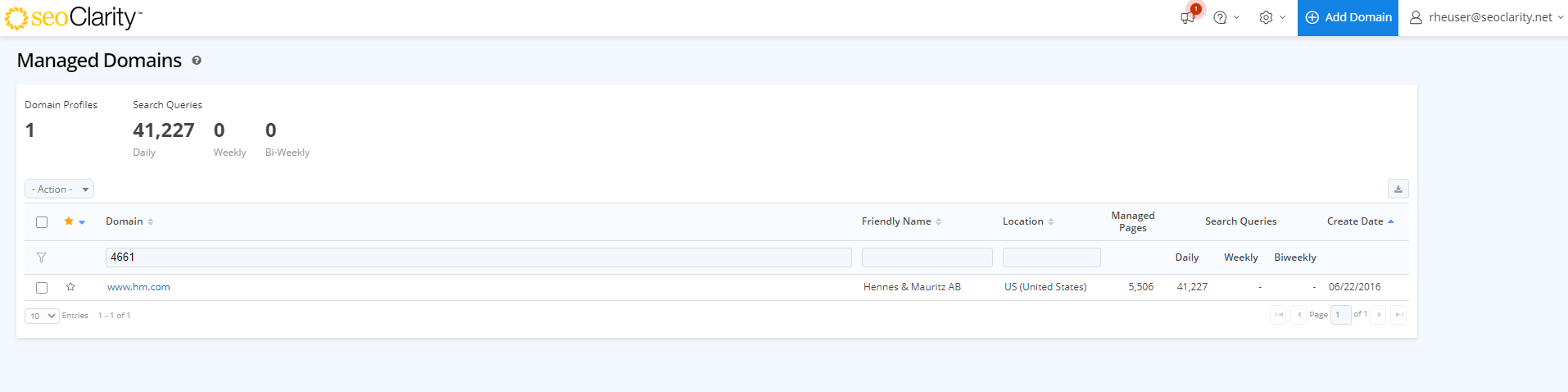 support@seoclarity.net) for those with multiple domains included in their subscription. Domain profiles can also be