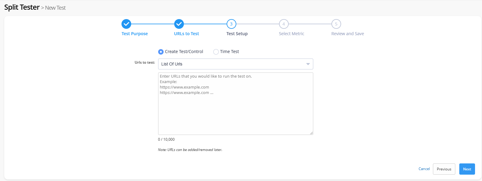 - Test Name: Enter a name for the test. This name will also be assigned as a Page Tag for the URLs in the test.