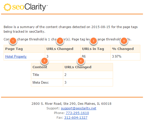 - URLs Changed: Displays the number of changes of managed URLs that have surpassed the set threshold for that Page Tag .