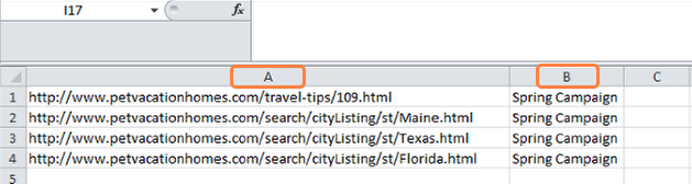 3. Paste in keywords, URLs, and tags from a spreadsheet. Using a spreadsheet, put the keywords in Column A, URLs in Column B, and the tags in Column C. You will then copy the 3 columns from the spreadsheet and paste them into the pop up.
