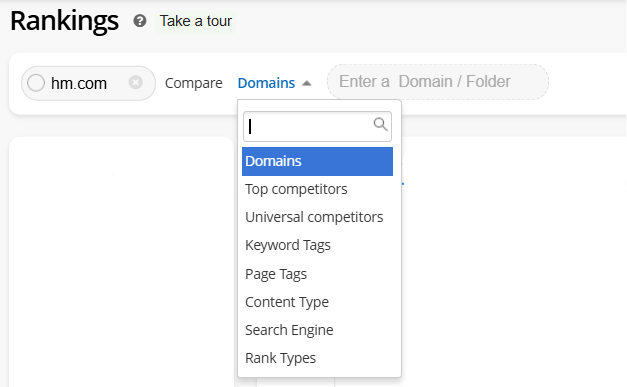 Compare Domains: Select this option to input specific domains to view ranking data for based on the managed keyword set.