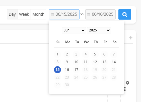 Date Selector: Select the dates for which you want to view ranking data. This defaults to the two most recently ended periods for daily & weekly domain profiles.