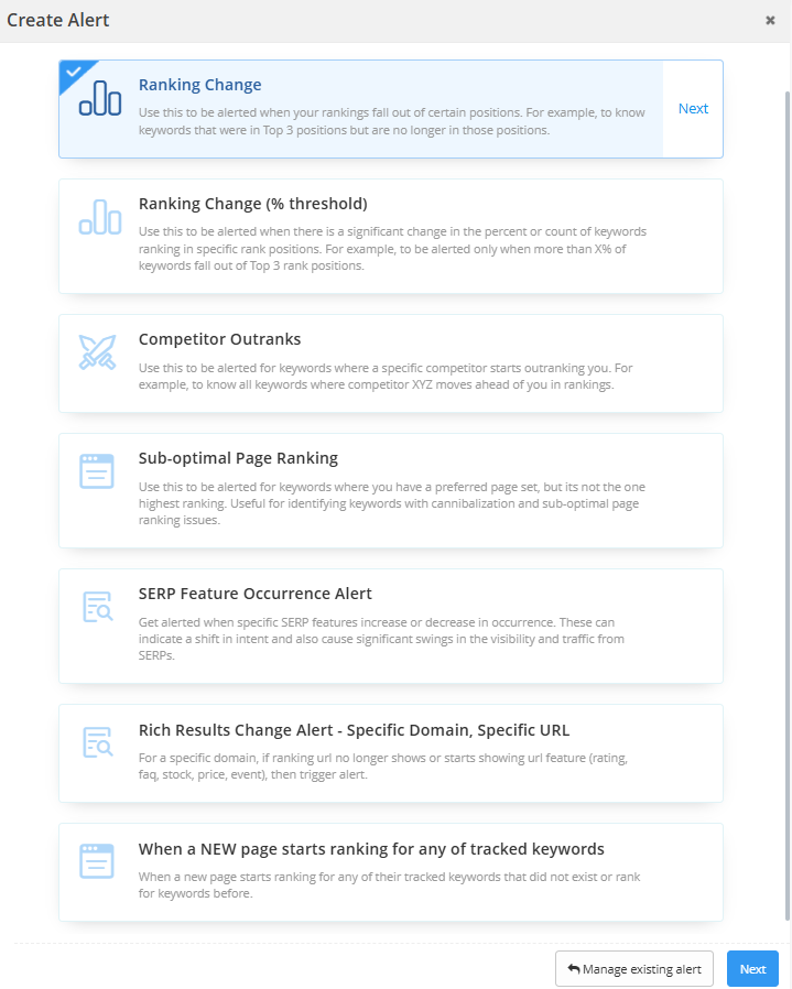 There are multiple use cases for each of the Ranking alerts. Outlined below are some examples: