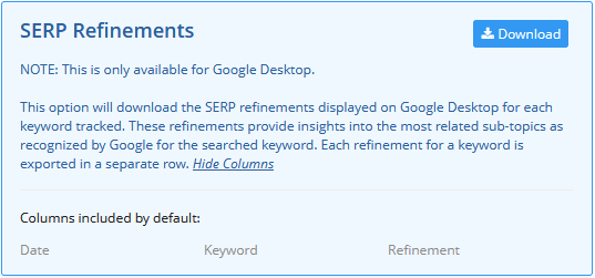 Our Rank Intelligence feature and widgets now offer a more detailed download center.