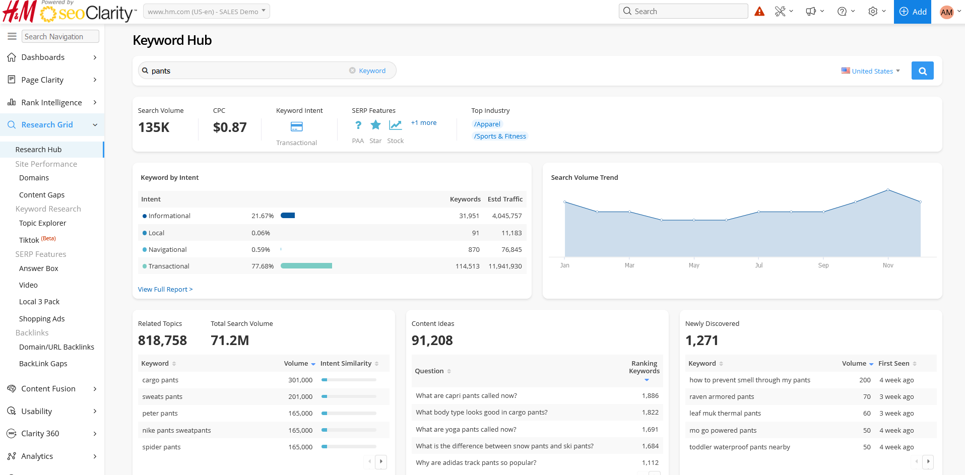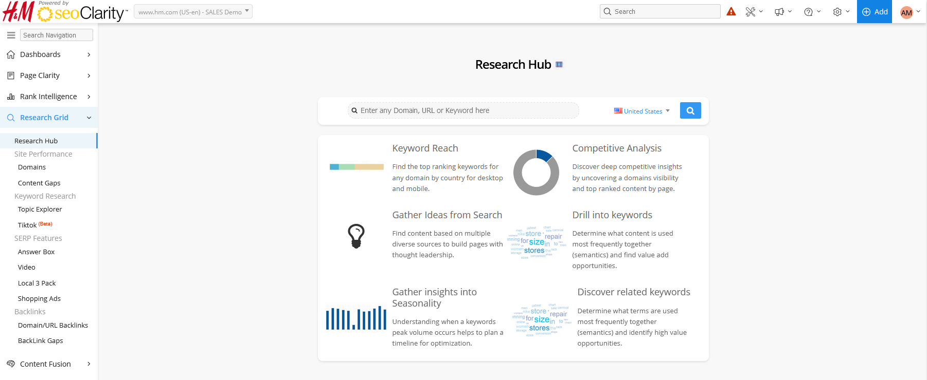 Enter a keyword or URL and get all of seoClarity's AI-driven intelligence based on the largest keyword data set.