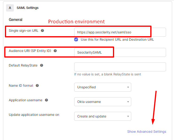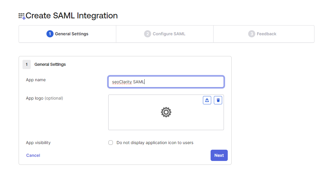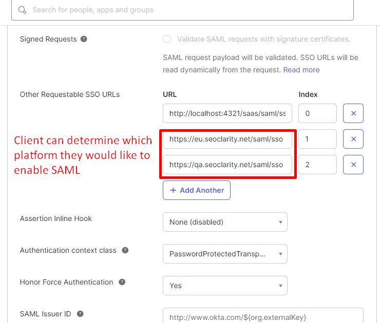1a) For most IdP configuration, you just need to setup an application with the above Entity ID and ACS URL (single sign on URL), and leave other fields as default. After setup, you need to download the IdP metadata.xml and send it to our support team at support@seoclarity.net