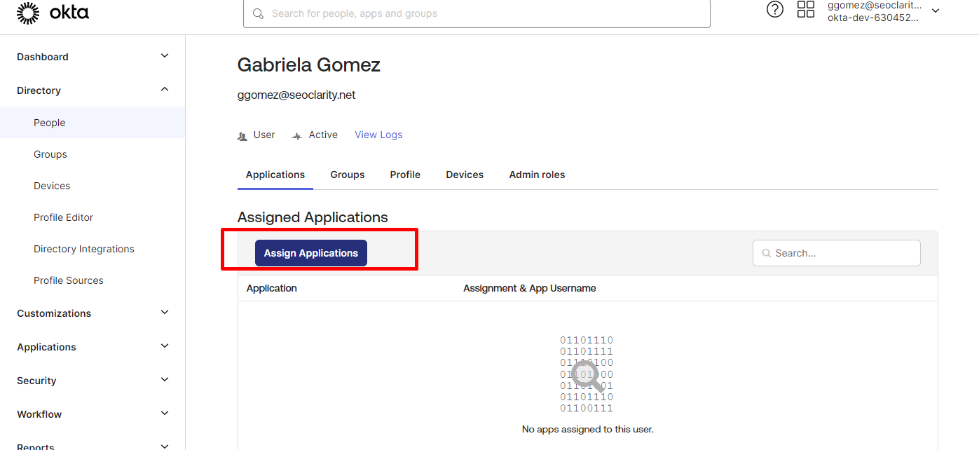 10. In the new tab that opens, click Assign Application.