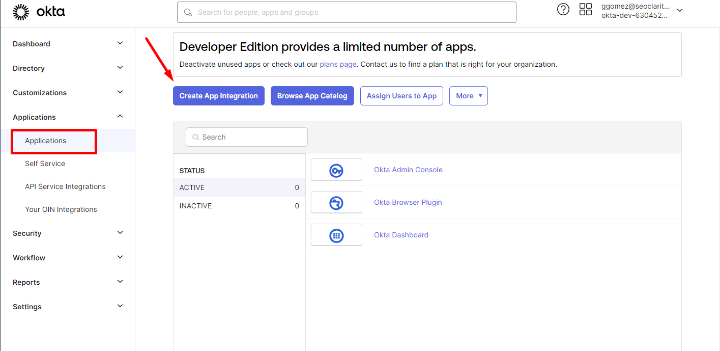 2. Click on Applications and then "Create App Integration":