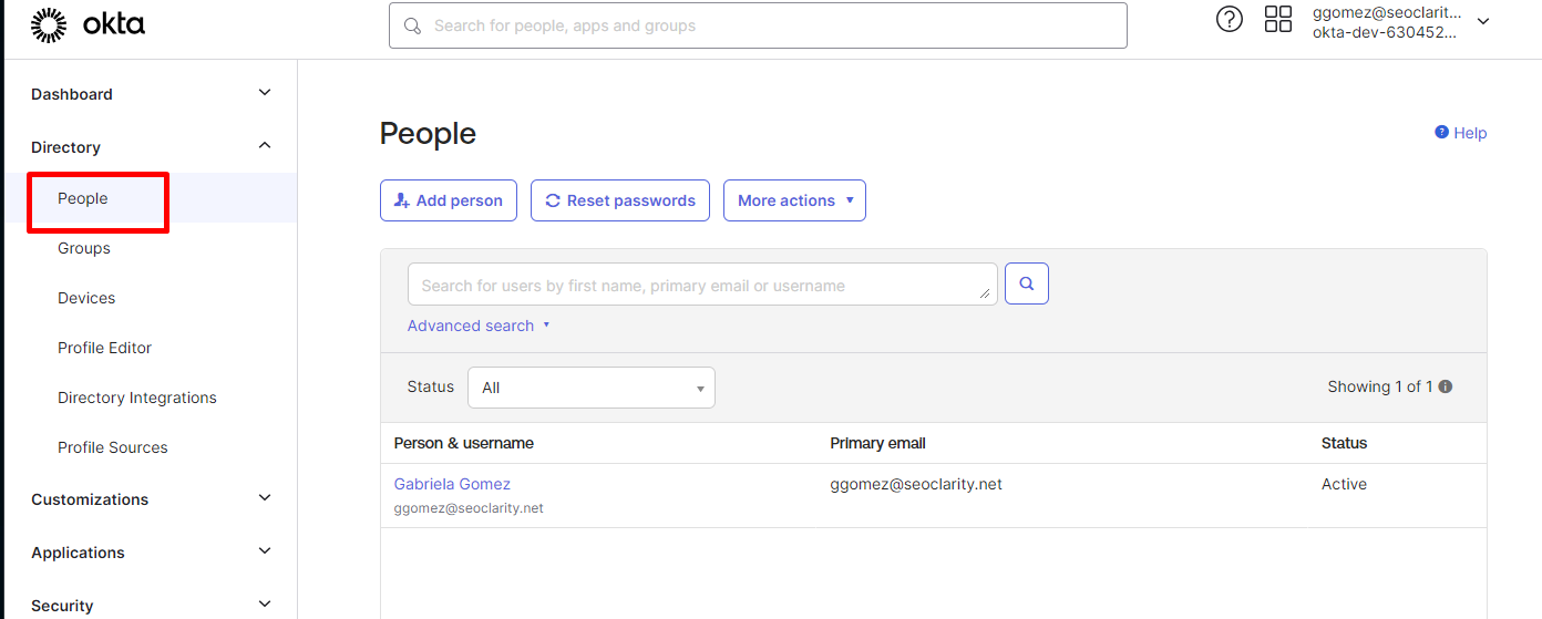 9. Right-click the People section of the Spring Security SAML application and select Open Link In New Tab (so that you can come back to the Sign On section later).