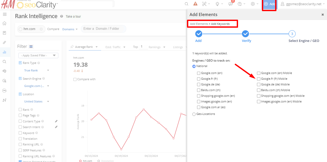 support@seoclarity.net with the search engine name (e.g., Google, Bing), country, and language you need. Setup can take up to two days. Some platform features, such as SERP Features, are only available for specific search engines where SERP features are present.