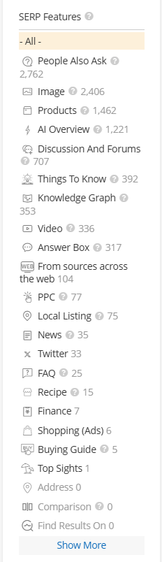 SERP Feature Filters