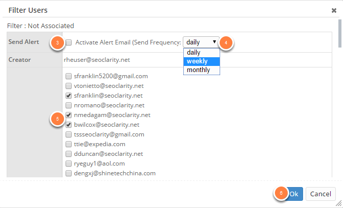 4. Click the drop down to choose the frequency of the alert email
