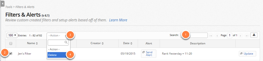 1. Search for the filter you want to delete in the search box